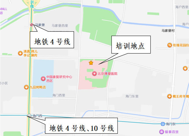 地址:北京市丰台区角门北路10号, 北京博爱医院东区F段一层第五会议室。